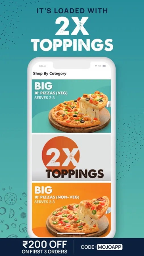 MOJO Pizza - Enjoy Pizzas with 2X Toppings from India’s Highest Rated Pizza Delivery Chain. FLAT 200 OFF on first App Order. Use Code: MOJOAPP.