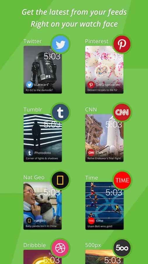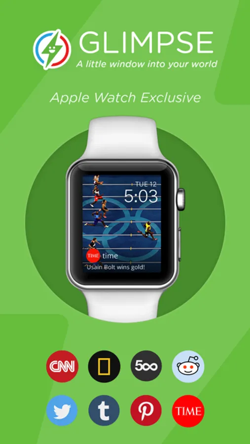 Glimpse brings real-time content from your favorite publications & social feeds directly to the face of your Apple Watch.
