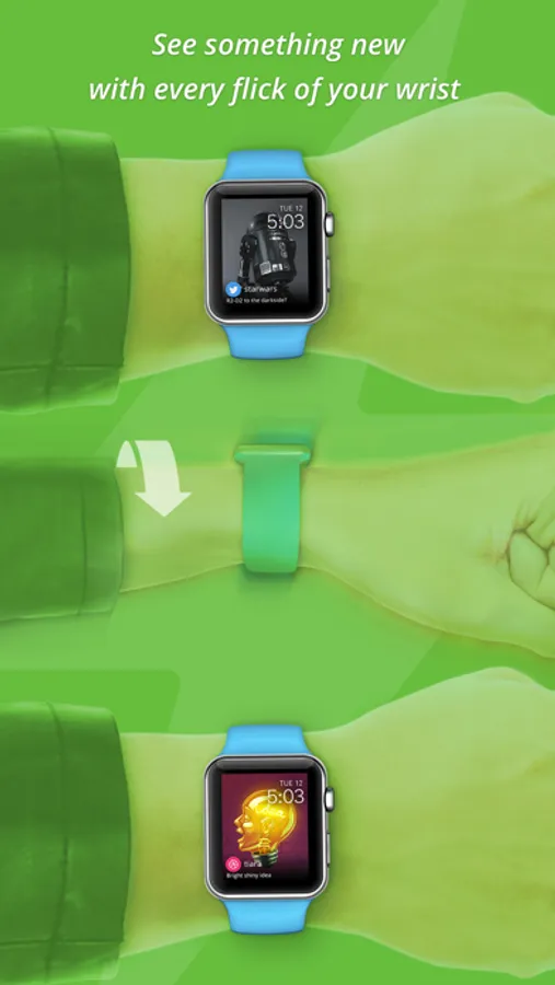 By setting Glimpse as your watch face, you can stay up to date on your world without having to open any apps on your phone or watch and without those annoying notifications. Just simply glance at your wrist!