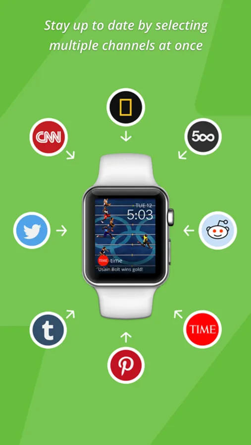 -Select multiple channels at once for your Glimpse feed including Twitter, Tumblr, CNN, Time, Nat Geo, Pinterest, Reddit, Dribbble, 500px and more.