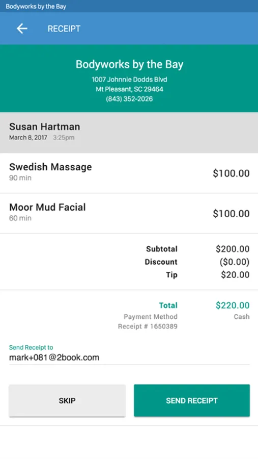Feel free to send us your feedback and comments to: support@massagebook.com