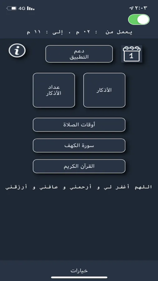 * وجود قسم عداد الأذكار لتتمكن من حساب عدد الأذكار التي تنطقها وهو بمثابة سبحه