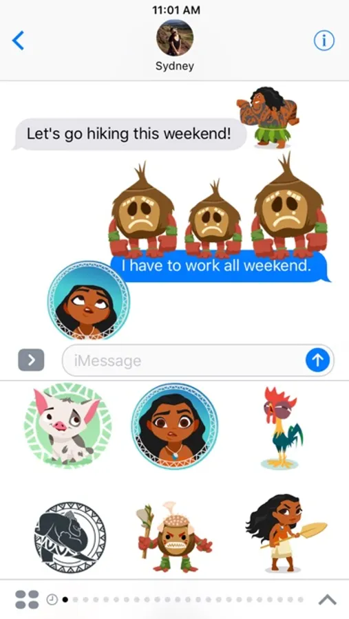 Express yourself in new ways with dynamic and animated Disney Stickers you can put anywhere in your chat. Scale, rotate, and layer stickers—even place them on photos you send and receive! Discover all our sticker packs in the iMessage App Store including Disney's The Lion King, Pixar's Finding Dory, and more. Use Disney Stickers to add magic to your iMessages!