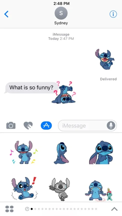 Add some extraterrestrial flair to your iMessages with this sticker pack featuring the fun-loving, mischievous Stitch!