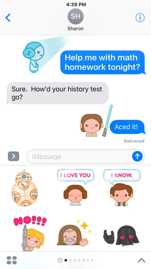 Express yourself with iconic Star Wars imagery that you can place anywhere in your iMessages. Layer Rebel pilot or stormtrooper helmets over your photos.