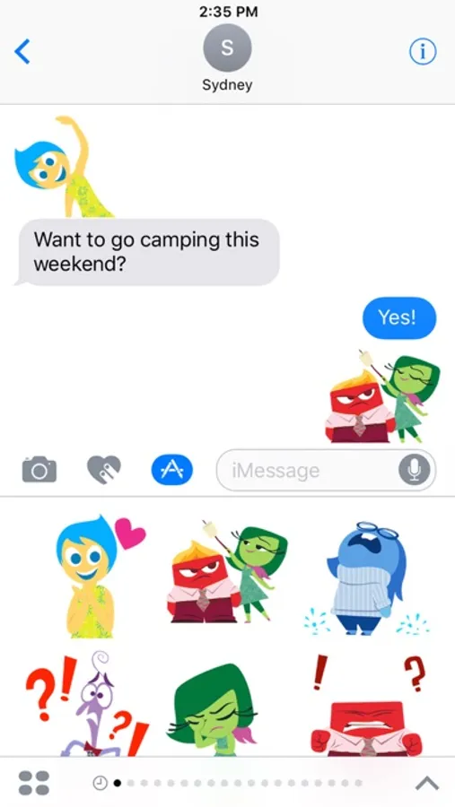 Express yourself in new ways with dynamic and animated Disney and Pixar Stickers you can put anywhere in your chat. Scale, rotate, and layer stickers—even place them on photos you send and receive! Discover all our sticker packs in the iMessage App Store including Disney's Beauty and the Beast, Pixar's Finding Dory, and more. Use Disney and Pixar Stickers to add magic to your iMessages.