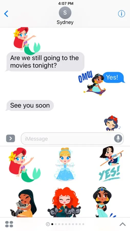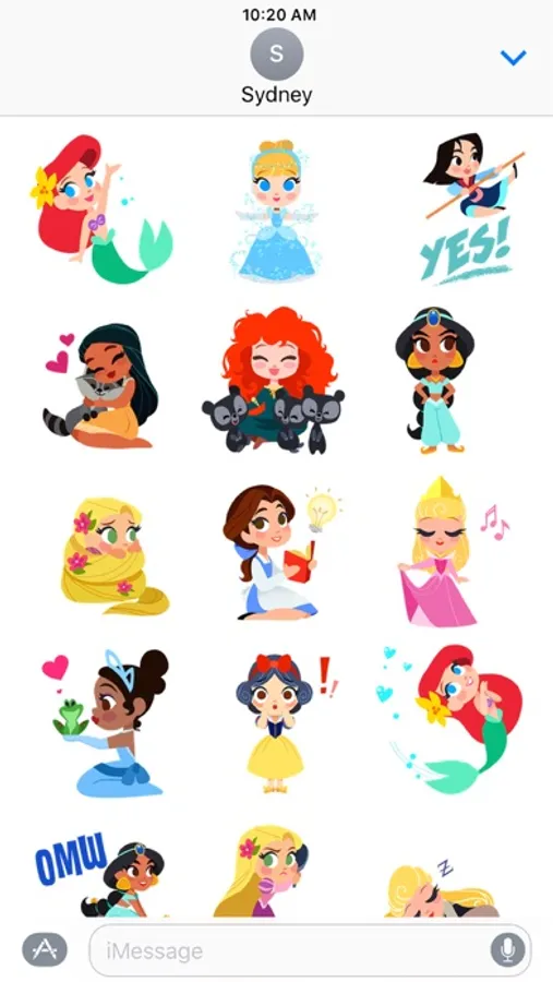 Add big dreams to your iMessages with this Princess sticker pack that includes iconic characters like Ariel, Rapunzel, and Mulan.