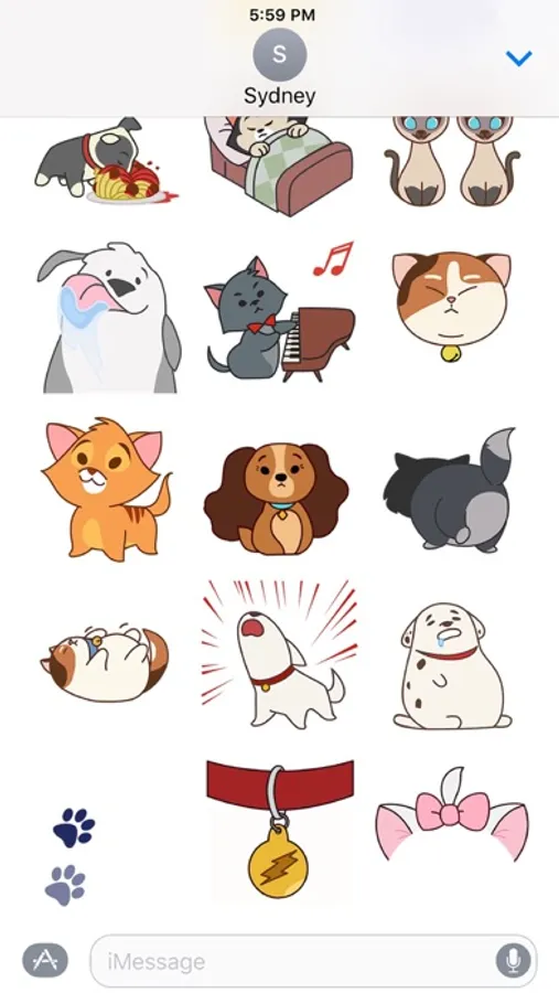 Add clawsome to your iMessages with this Cats and Dogs sticker pack that includes iconic characters like Lucky, Marie, Bolt, and Lady.