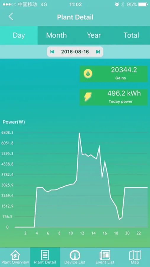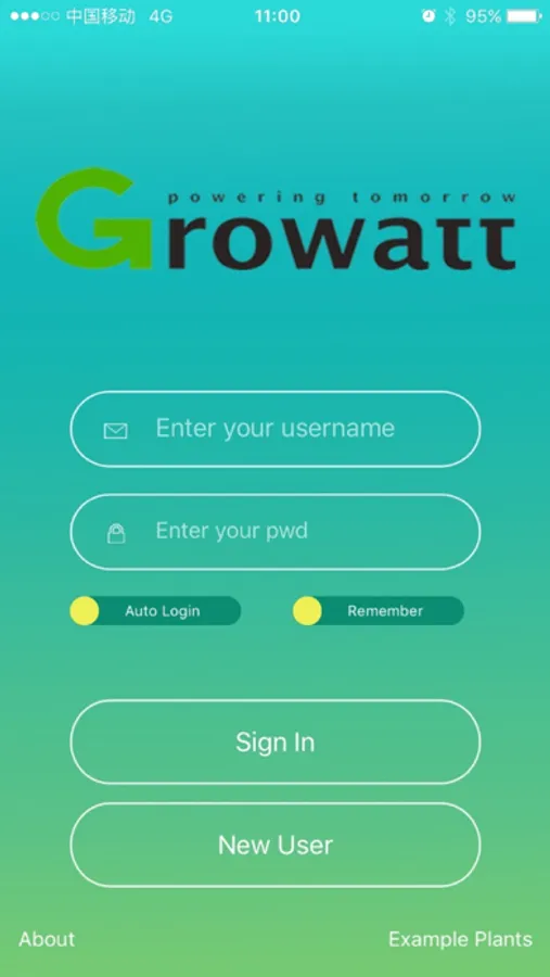 A client software for monitoring the photovoltaic plant; it can collect the plant running info from Growatt PV Data Center, such as energy yield, income and system status, which can be remotely and wirelessly accessed by the user. At present it only supports plant which is registered in Growatt PV Data Center(server.growatt.com)