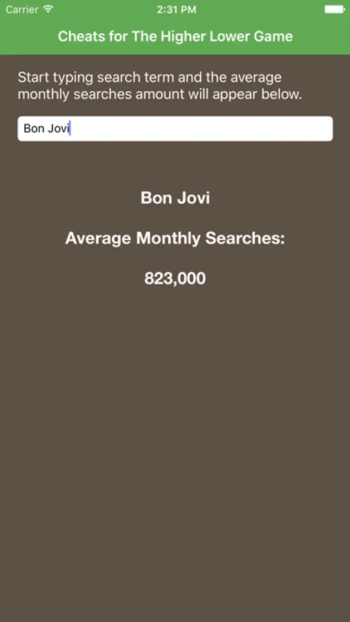 Get the number average monthly searches for the search terms in The Higher Lower Game.