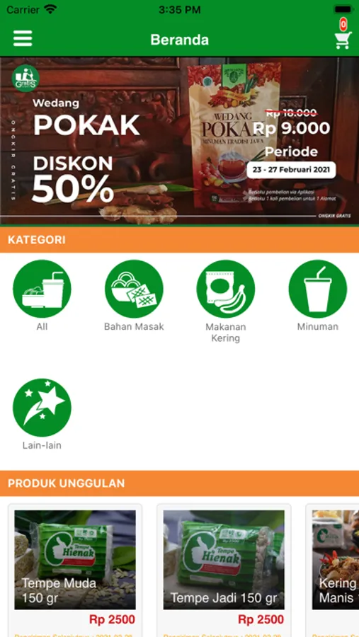 Dengan Ongkir Gratis saat ini Anda bisa memesan Tempe dan Kering Tempe, dan selanjutnya kami akan terus menambah produk yang bisa anda peroleh.