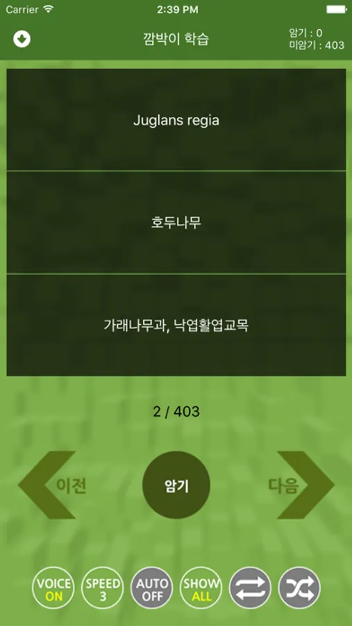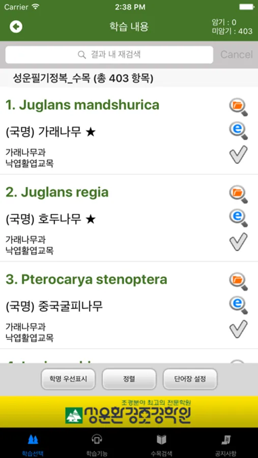 * 암기·미암기 체크 기능으로 내가 외운 학명을 구별해가며 암기 가능!