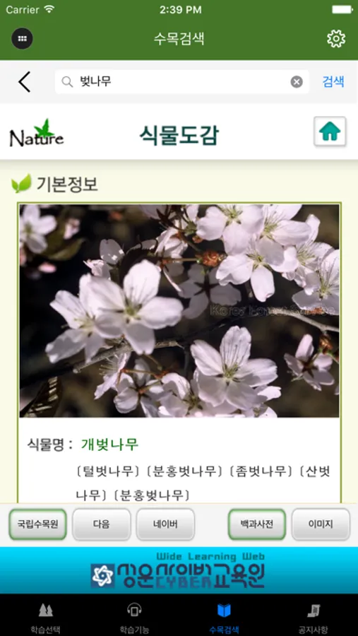 수목학명·수목감별 앱이 여러분의 성과에 많은 도움이 되기를 바랍니다.