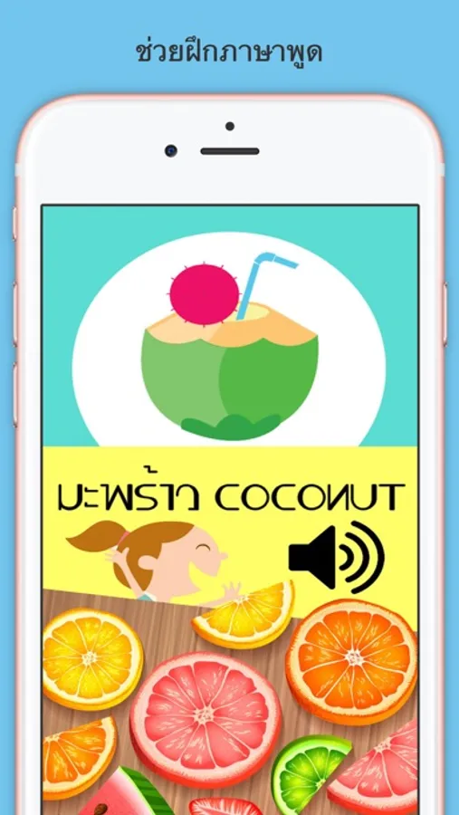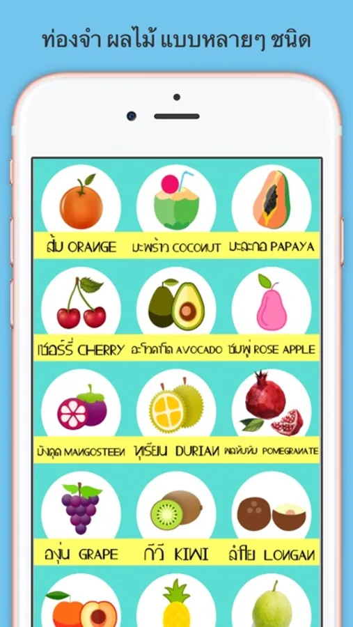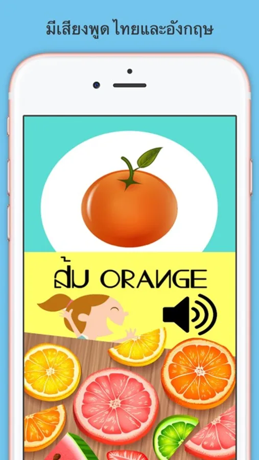 รู้จักผลไม้ สำหรับเด็ก มีเสียงพูด 2 ภาษา ทั้งภาษาไทยและอังกฤษ อาธิเช่น มะม่วง แตงโม ส้ม เป็นต้น แอพนี้จะช่วยให้เด็กๆ ได้เรียนรู้ คำศัพท์ผลไม้ได้เป็นอย่างดี