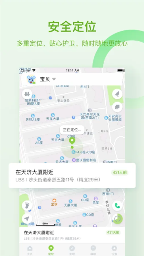 【实时定位】多种方式进行准确定位,家长可随时知道孩子所在,孩子在外玩耍更安心