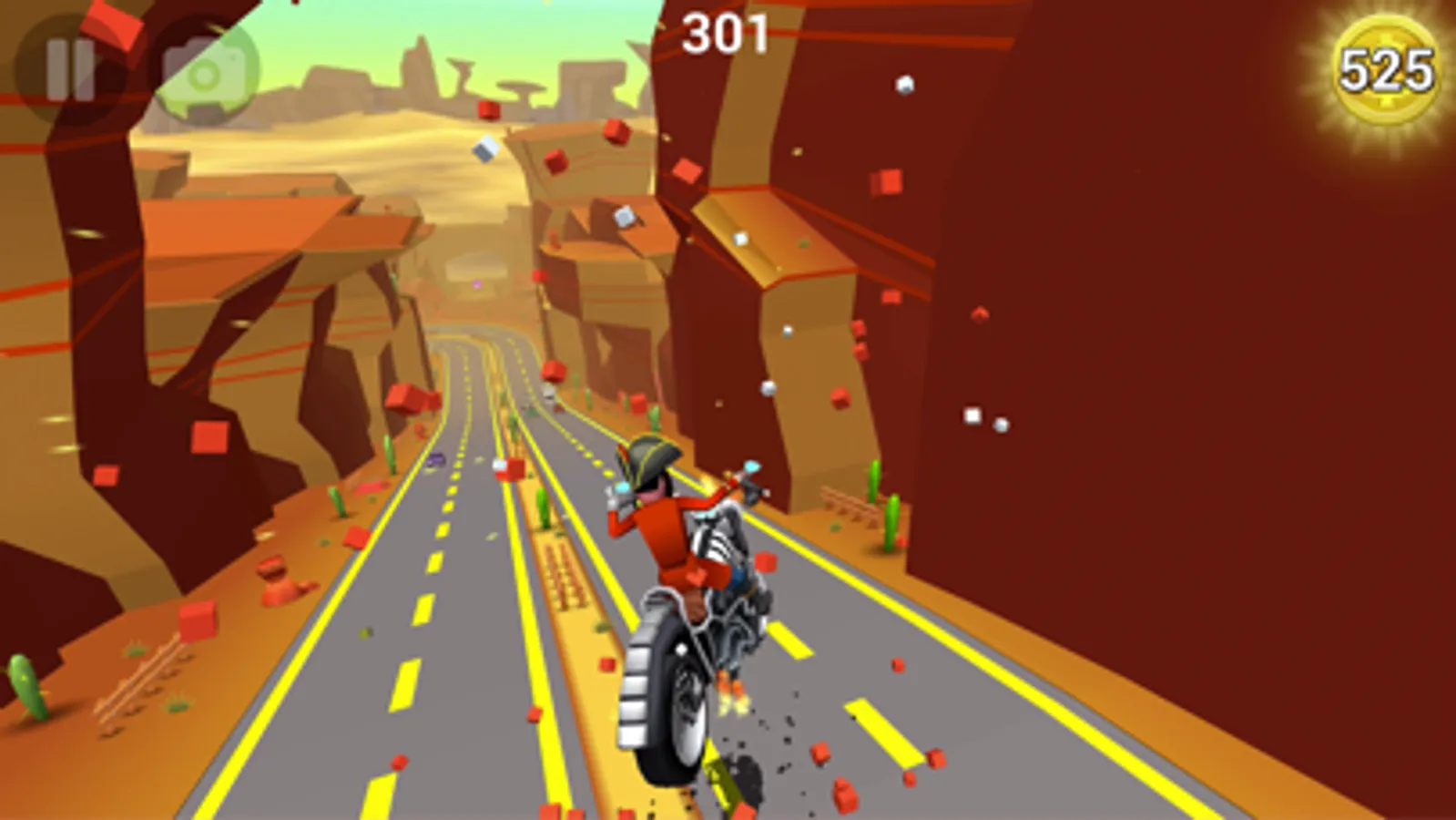 In this physics-based motorbike game you must maneuver an endless mountainside dodging hazardous terrains such as cacti, rocks, traffic and trains resulting in some fun and hilarious near misses and crashes.