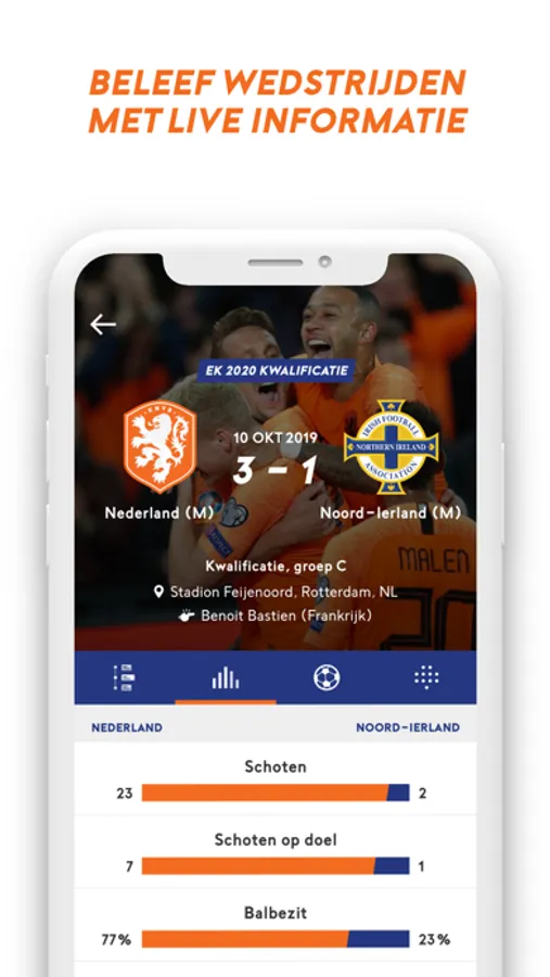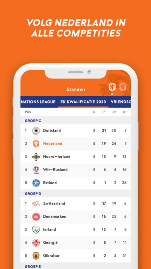 De officiële gratis KNVB Oranje app is dé app voor fans van het Nederlands elftal en het Nederlands vrouwenelftal.