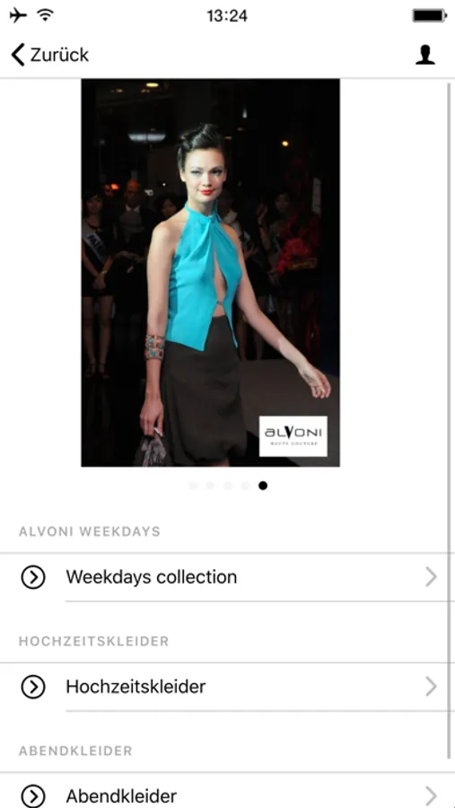 At the centre of her creation, elaborately produced in her atelier, there are, alongside her Alvoni Weekdays daywear collection, above all, Alvoni Haute Couture, evening-wear and wedding dresses.
