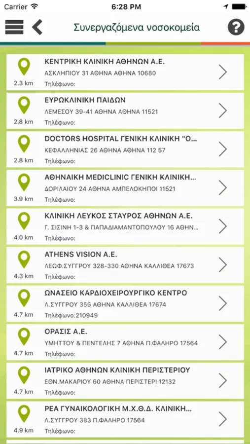 - Εντοπίστε τα πλησιέστερα σε εσάς συμβεβλημένα νοσοκομεία και συνεργεία