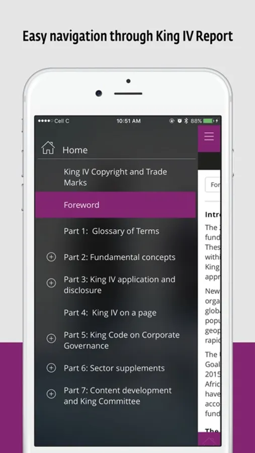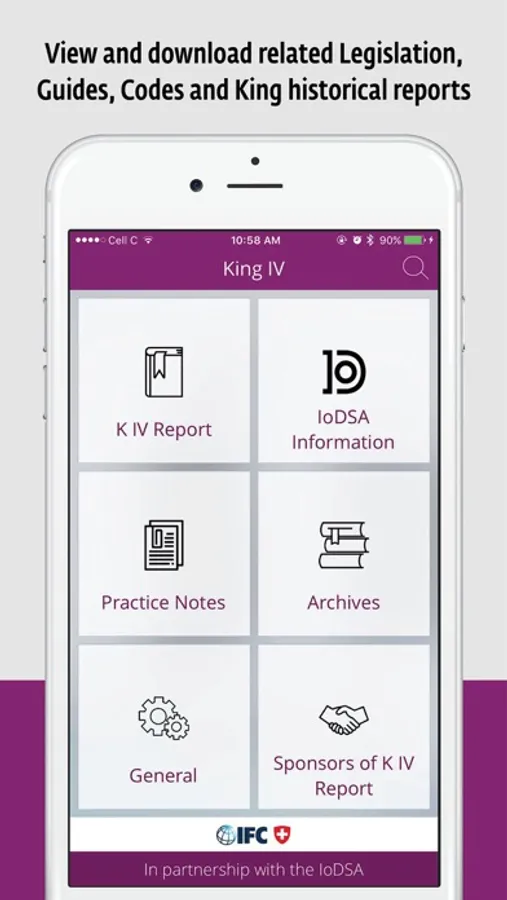 The King IV Report app gives you easy access to the entire King IV Report on Governance in South Africa, 2016 including the sector supplements. Search functionality makes access to governance best practice easier. Also included in the app are the relevant acts, codes and guidelines referred to in King IV as well as historical King reports, namely King I, II and III. No more carrying around text books to know what the roles and responsibilities of governing bodies are. Every person tasked with governance duties should have this app.