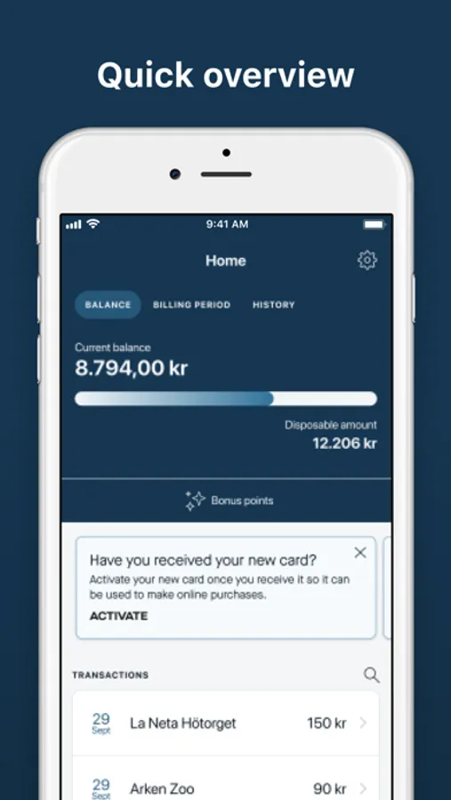 • Get notifications of important events, purchases or if you have reached your spending limit. You can also get notifications of updated exchanges rates, when traveling.