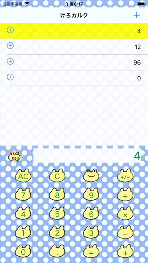 かわいいかえるの女の子「けろりーな」の電卓アプリです。