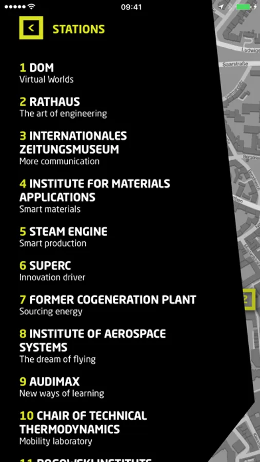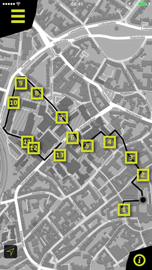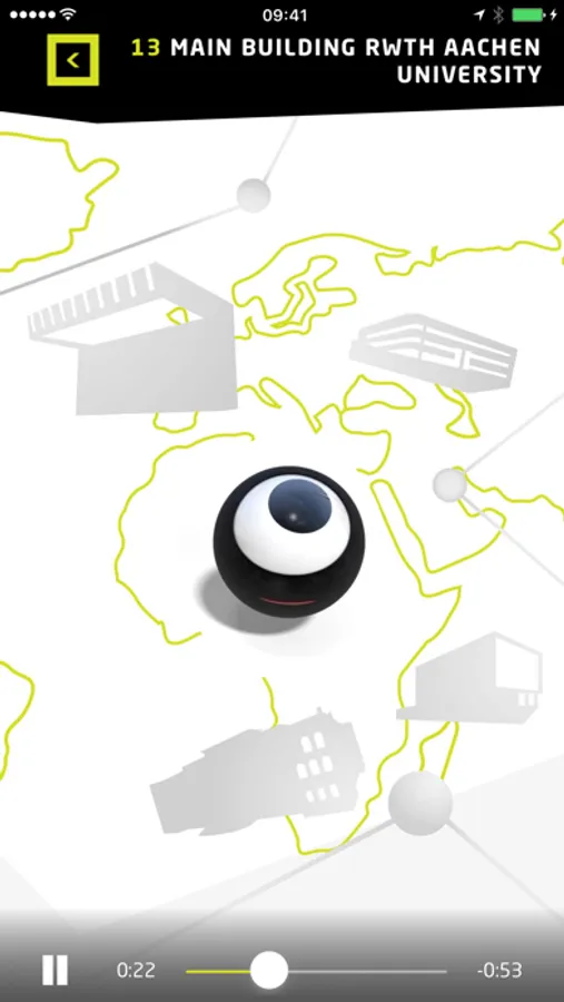 The app is GPS-based. A dynamic map shows the current location. Steles in the city mark the stations and can notify you of their proximity using iBeacon signals. Digital 3D objects in augmented reality are available at selected stations.