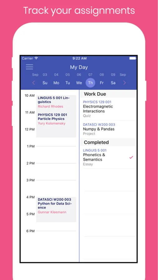 - collaboratively track assignments, tests, labs, etc. Think Wikipedia as an example! Any assigned-work entered by one student can be seen by all students in the class, thus (i) reducing the data entry work, and (ii) giving you the ability to know precisely when/what is due.