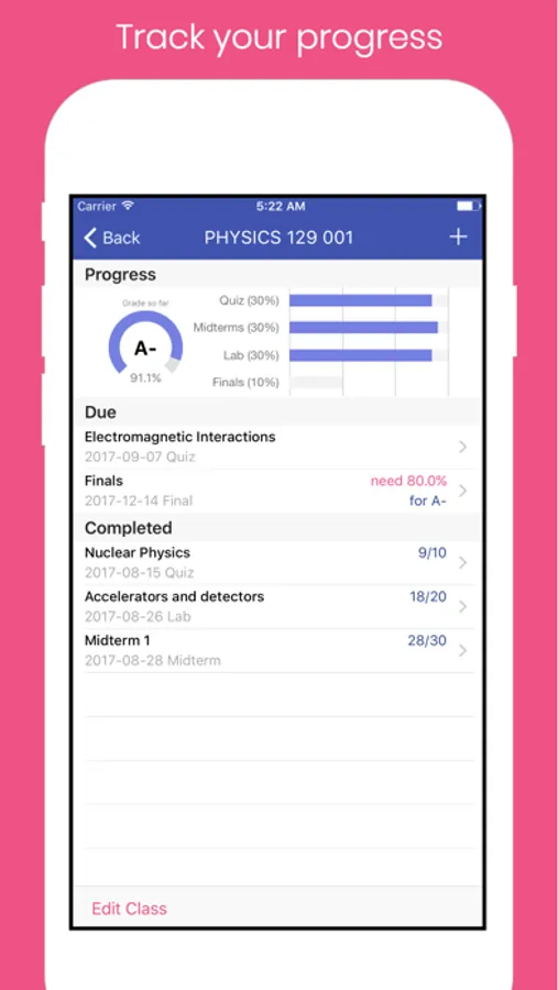 - privately track your progress in each class (scores, completion status, grades so far, etc.)