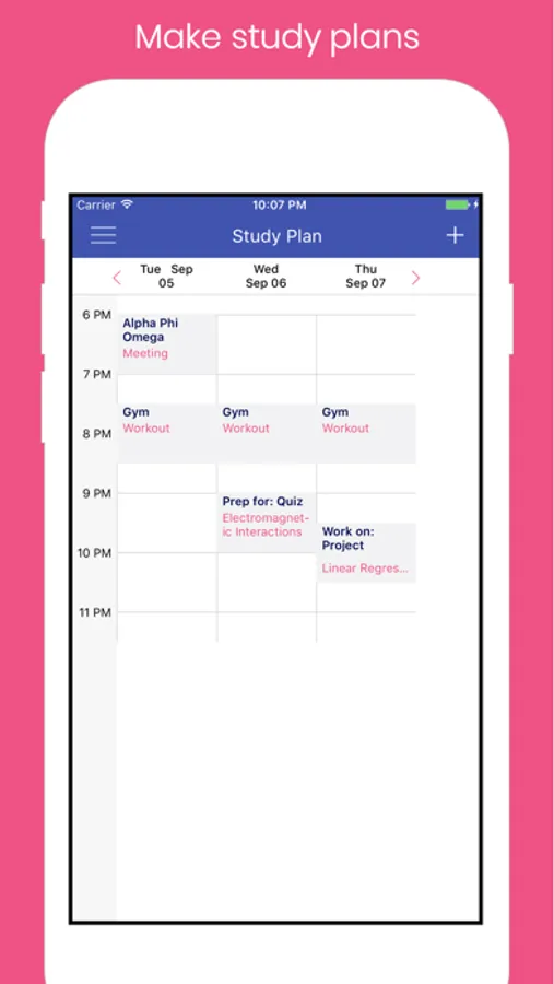 - privately make study plans on when to work on what, even planning your extra-curricular activities (meetings, clubs, exercise/work-out)