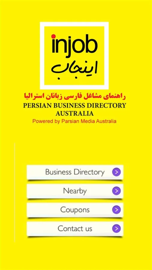 Injob is an Iranian/Persian Business Directory business in Australia. Download the Injob app for quick and easy access to getting in touch with Persian/Iranian/Farsi speaking businesses.