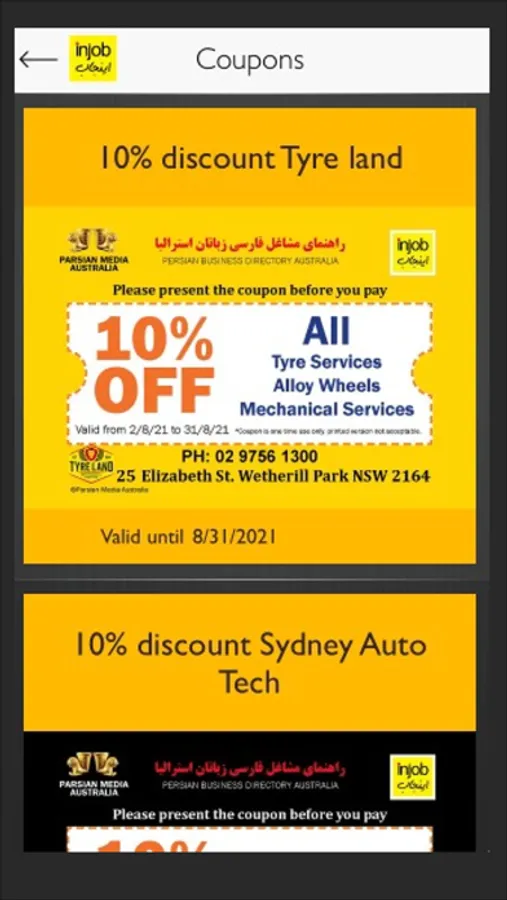 Injob is proudly presented by Parsian Media Australia. Injob Australia is an app that makes all businesses easy to reach by nearby services, sharing the route and information in no time. All Persian/Farsi speakers can use our reliable platforms to narrow the search and connect to Persian/Farsi speakers businesses. Injob adopted cutting edge technology to create reliable Business Directory in Australia such as mobile-friendly websites, app and strong social networking in the Persian community. Since 1993, Persian Business Directory published by Parsian Media Australia has remained as an online Persian Business Directory since 2010. In addition, from 2021-2022 Persian Business Directory would return to being published as a book.