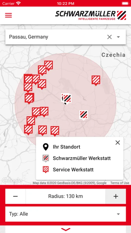 Get a clear overview of the Schwarzmüller service workshops with our app – simply enter your preferred radius. There is also an option to specify the service you want, so you can quickly find the right service partner for your needs, complete with address and contact information – even when you are offline. In online mode, you can also call a workshop directly. Directions to the nearest and/or any chosen service partner can be enabled, either from your current location or another specified location.