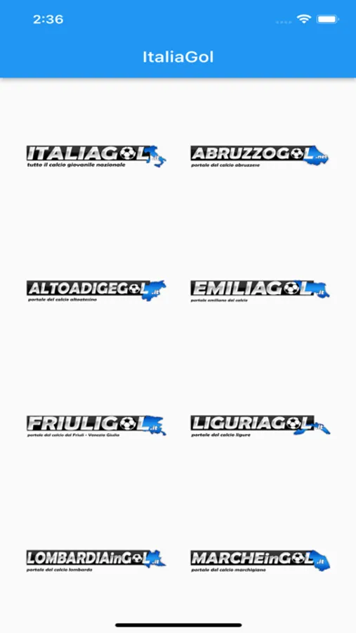 La app si appoggia ai vari portali del gruppo con suffisso GOL e li trovate tutti sul portale http://www.italiagol.it vale a dire Friuligol, Venetogol, Trentinogol, Altoadigegol, Lombardiaingol, Piemonteingol, Liguriagol, Emiliagol, Toscanagol, Umbriaingol, Marcheingol, Abruzzogol, Laziogol, Campaniagol, Pugliagol, Basilicatagol, Calabriagol, Siciliaingol.