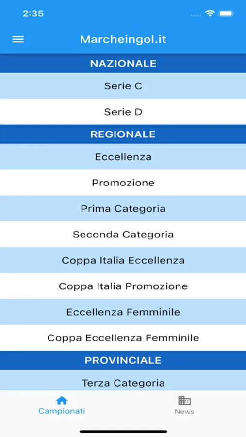Potrete inserire un campionato come preferito e farvi arrivare le notifiche relative ad ogni cambiamento di risultato.