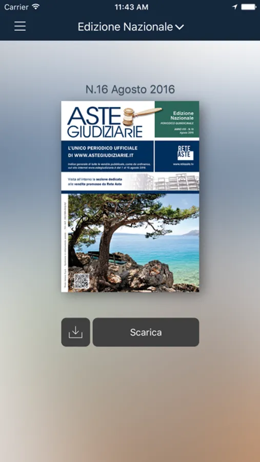 L'applicazione permette la consultazione delle vendite giudiziarie pubblicate su "Aste Giudiziarie" in Edizione Nazionale, l'unico periodico ufficiale di www.astegiudiziarie.it , primo e più ampio portale italiano di pubblicità legale.