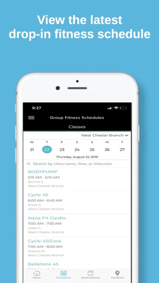 View pool lap swim schedules and search daily group exercise class schedules by branch, class name, time or instructor.
