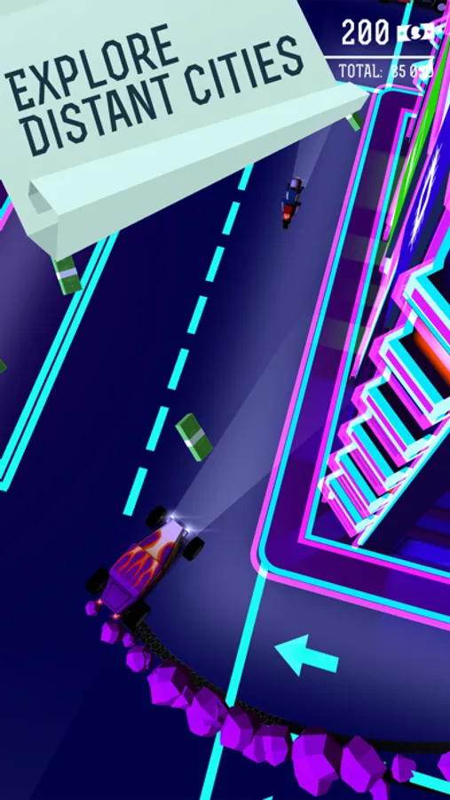 In Drifty Chase the longer you play the faster you go. Each car has different speed and handles a little bit differently so the game experience is never the same - it differs the more you play! Better cars let you earn more coins which lets you unlock other cars with a totally different game sceneries.