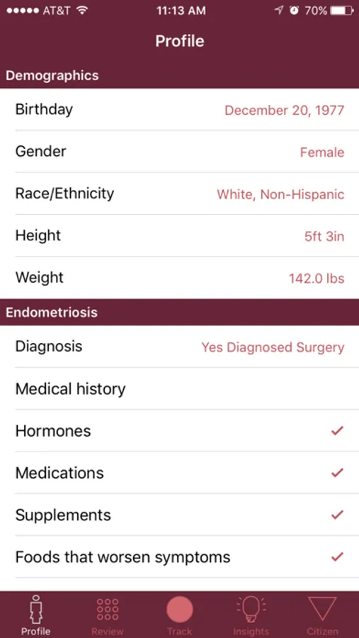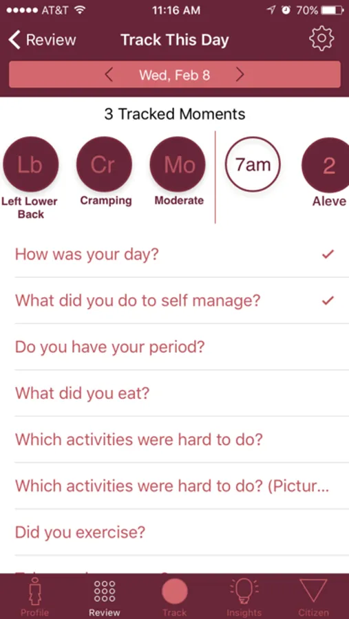 - We will ask you to track endometriosis symptoms and signs of the disease at a daily level through “track this day”.
