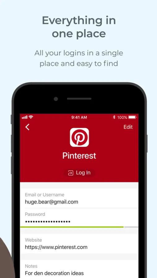 * Never forget a password: Save your passwords in a single place and say goodbye to un‑bear‑able password resets