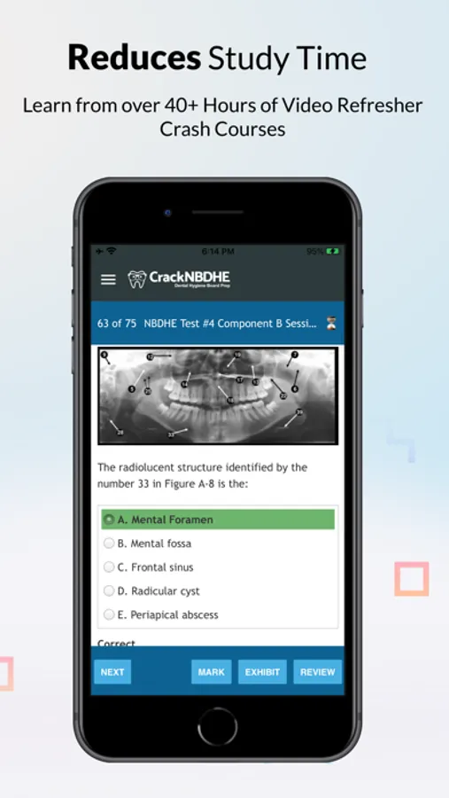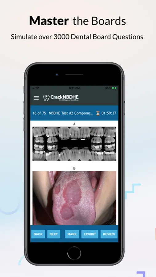 +Take mock runs of the actual NBDHE Dental Hygiene Boards with the same look and feel of the National Board Dental Hygiene Examination
