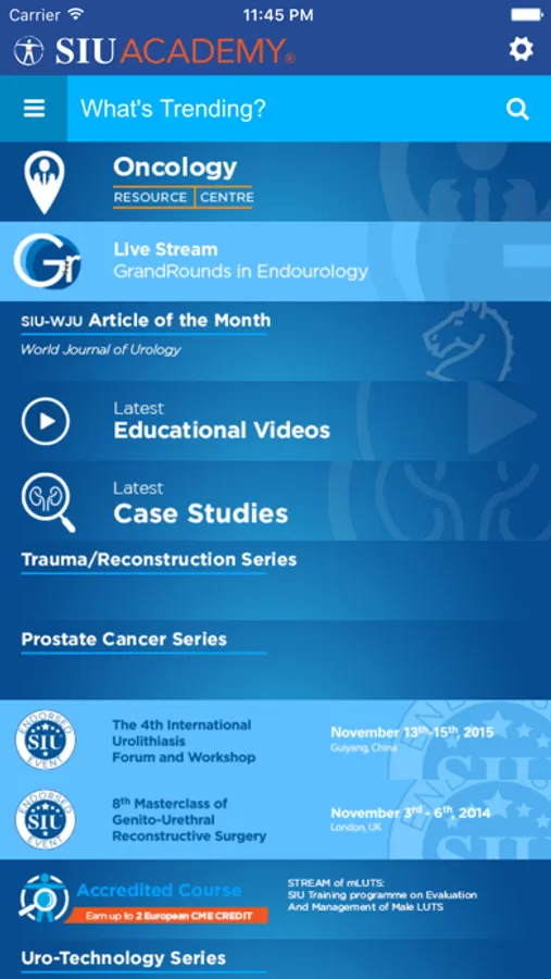 SIU Academy® App, the official mobile learning app of the Société Internationale d’Urologie (SIU), offers access to thousands of educational materials and activities published by SIU over the years such as eLearning Programs, Accredited Lectures, Self-Assessments, Learning Quizzes, Webinars, Asynchronous and live Webcasts, ePosters, Video Techniques, Documents, Abstracts, Expert opinion videos and editorials.