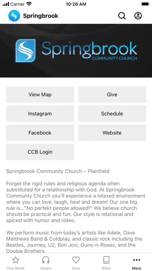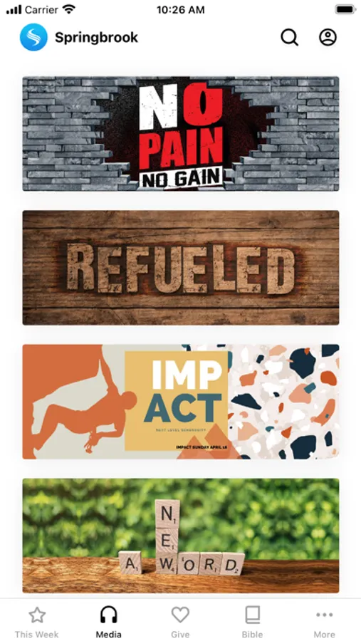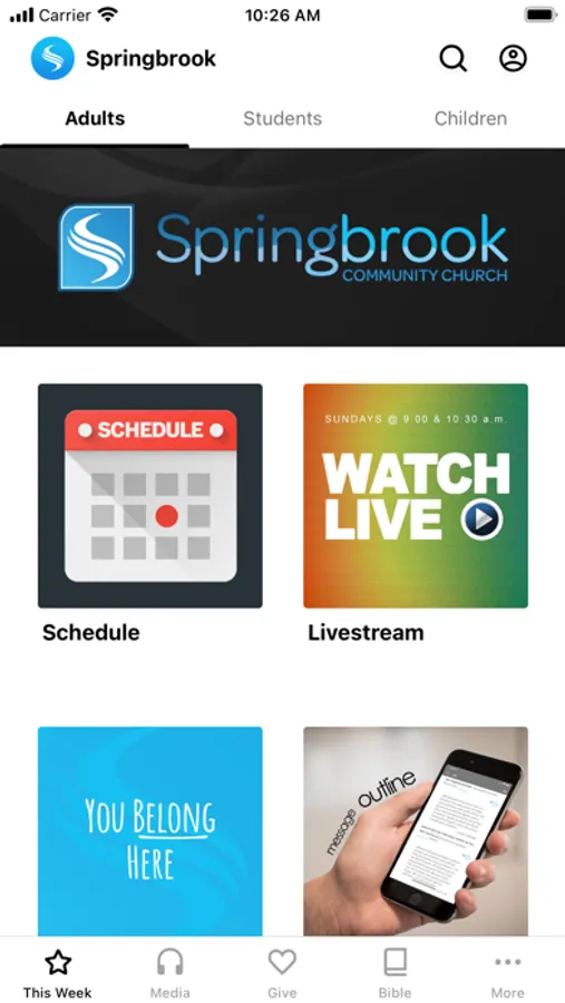 The Springbrook Community Church App was created with the Subsplash App Platform.