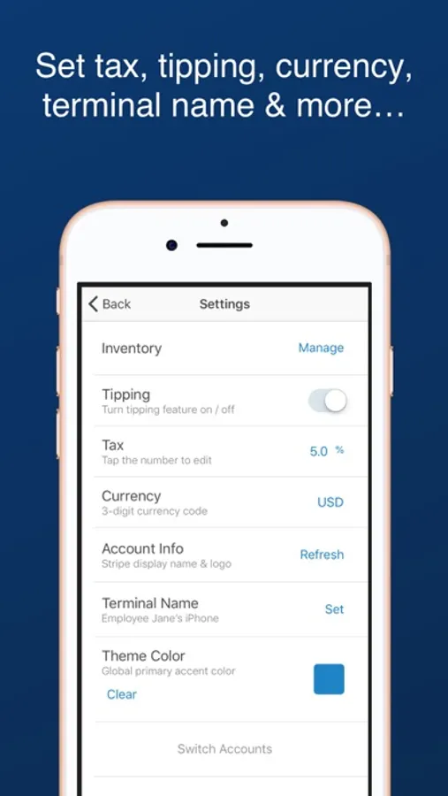 Accept virtually any credit or debit card directly to your Stripe account within seconds.