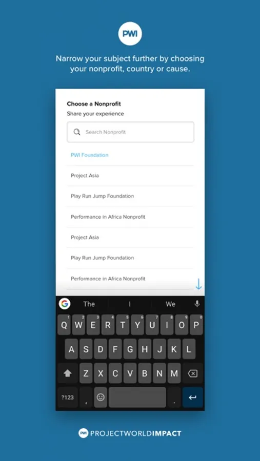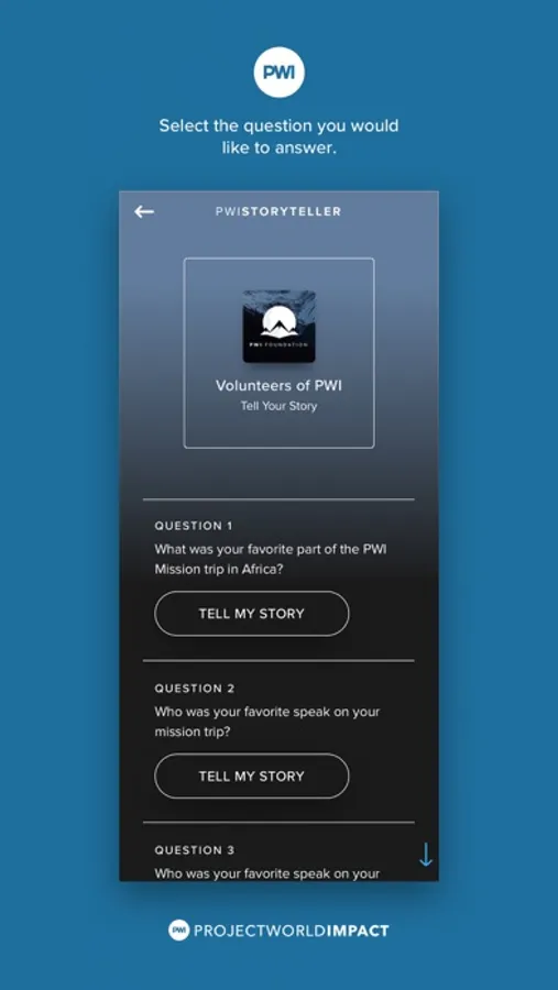 Select from any of the participating nonprofit organizations from Project World Impact, give 3 short replies, and share your responses with the nonprofit so that they can tell THEIR story with YOUR story!