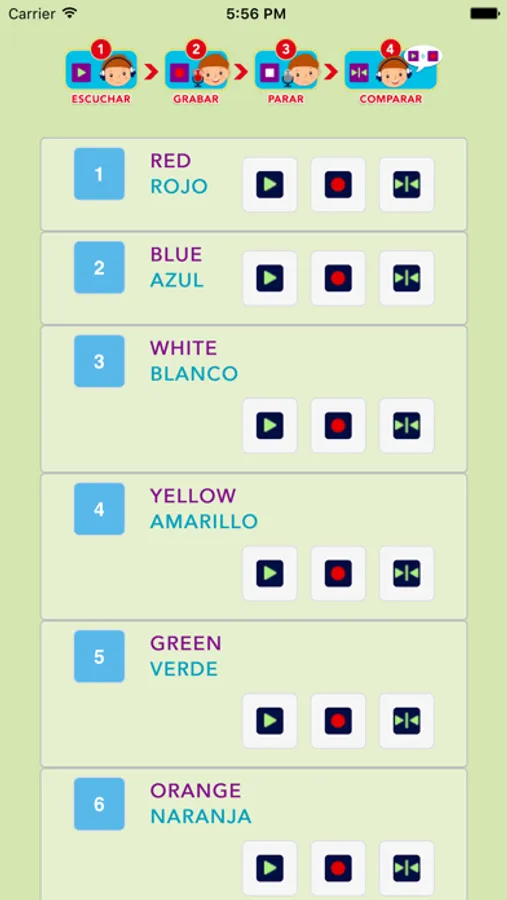 Esta aplicación permitirá al niño o niña identificar palabras con su imagen correspondiente, leerlas, escucharlas e incluso practicar su pronunciación grabándose a sí mismo y comparando su grabación con la pronunciación real de la palabra en inglés, con voces de otros niños y adultos.