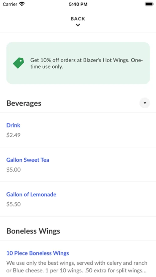 With the Blazer's Hot Wings mobile app, ordering food has never been easier. Whether you're looking for a quick snack or a full meal, we've got you covered. Just browse our easy-to-use menu, customize it how you'd like, place your order using our secure payment system, and sit back! A push notification will alert you when your order will be ready.