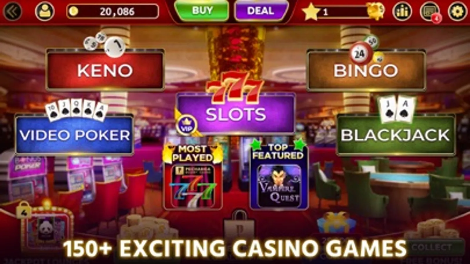 Choose from 100+ free slots, video poker, blackjack, keno, bingo and much, much more! Hit it rich playing slots with HUGE jackpots, daily and hourly bonus credits, bonus slot games and interactive quests. All new players get FREE bonus coins plus HUGE coin bonuses just for playing.