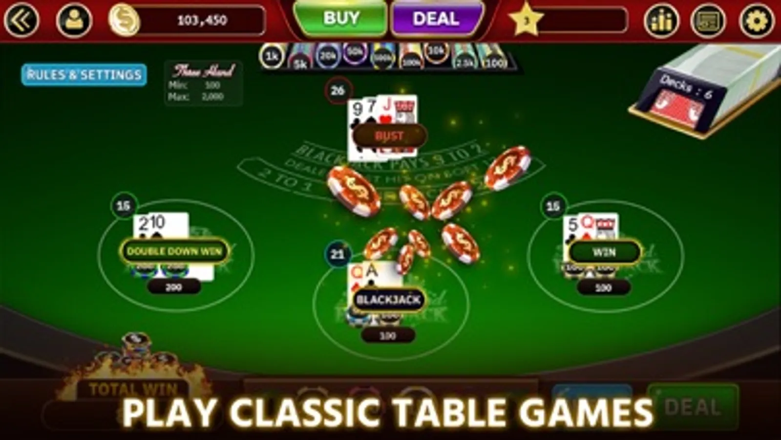 • Double down playing Blackjack favorites like BLAZING BETS BLACKJACK, Three Hand Blackjack and Single Deck Blackjack