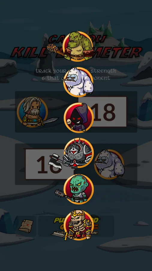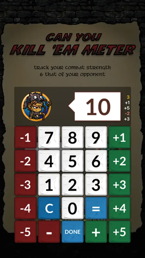 A "Can you kill 'em" meter for role playing board & card games including Munchkin and its many variants. It can also be used as a simple score counter or scorekeeper for all kinds of games.